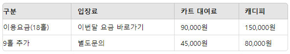 - 인터넷회원: 할인 미적용 (일반 그린피 적용)