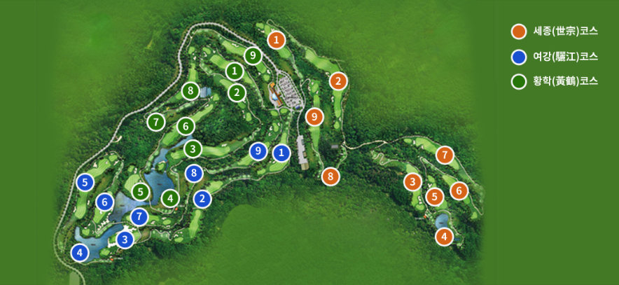 - 세종 ->여강 -> 황학 -> 세종 코스 순으로 이동 됩니다. (예약 확정 시 18홀 예약)