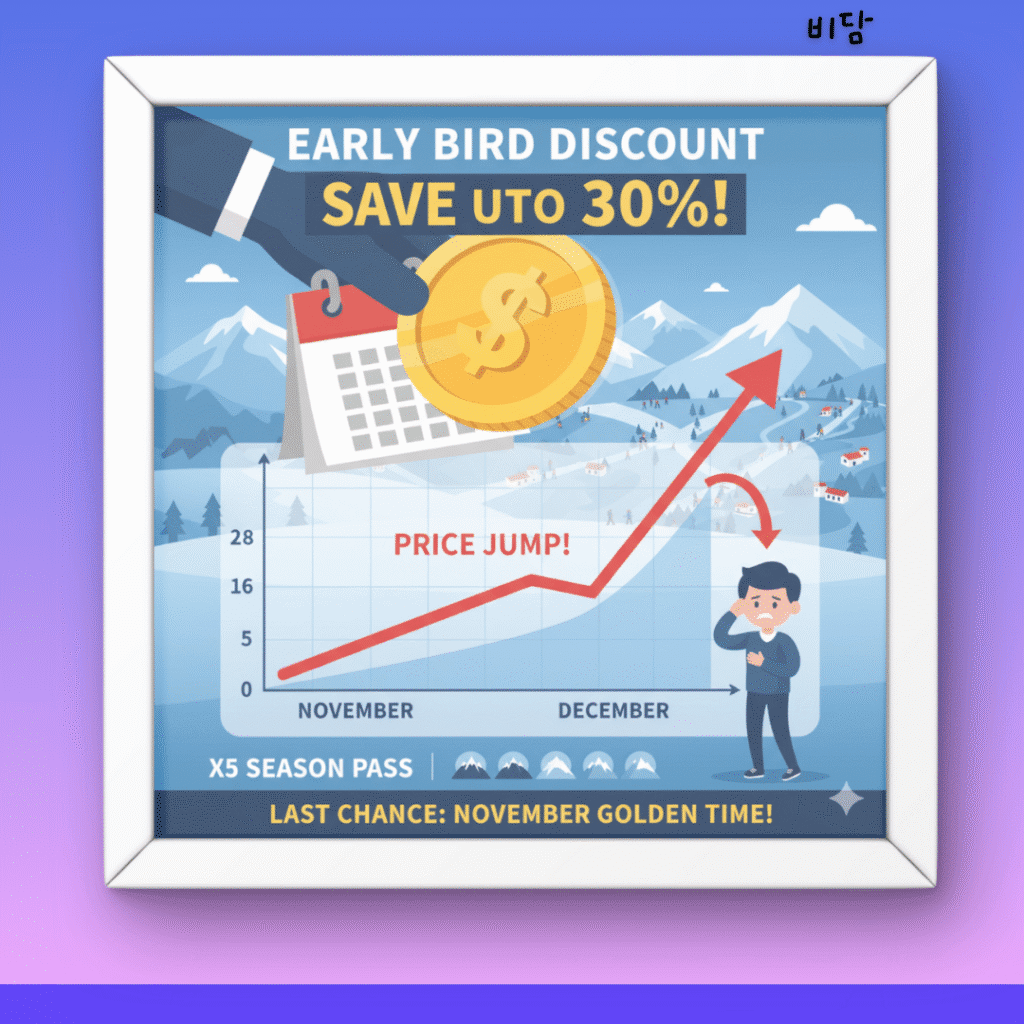 그런데 더 중요한 건, 시즌권 할인이 곧 끝난다는 거예요. 12월 들어가면 정말 아까워요. 지금 40만원에 살 수 있는 걸 12월에는 60만원 주고 사야 할 수도 있거든요.