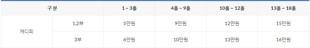 - 그린피: 우천홀별 요금표에 따라 정산이 됩니다.