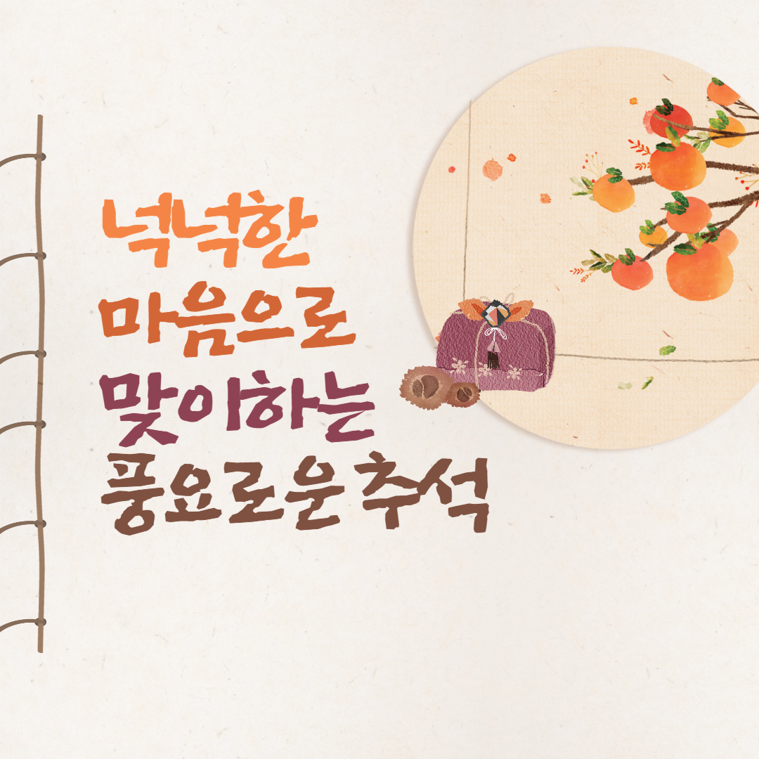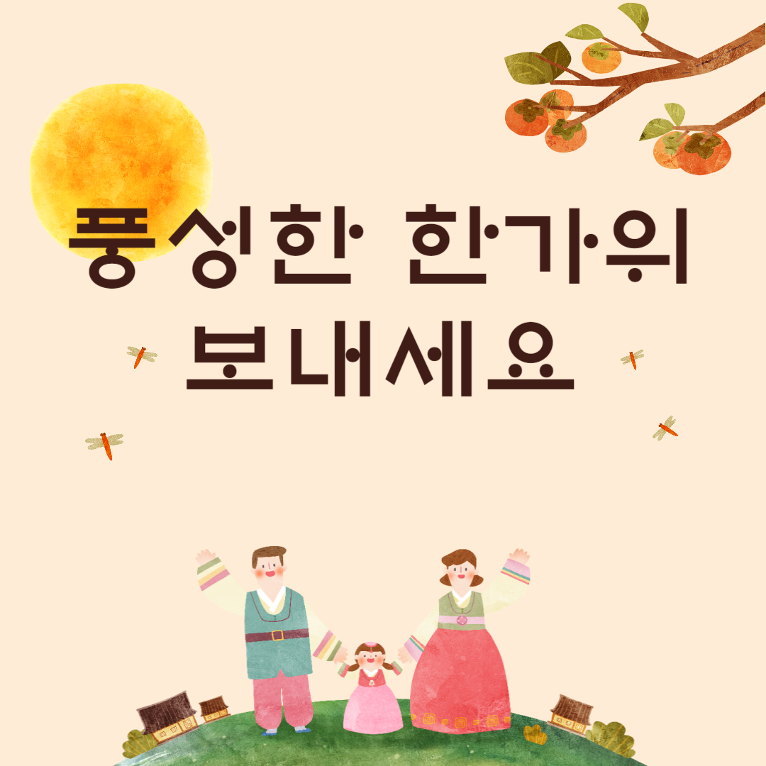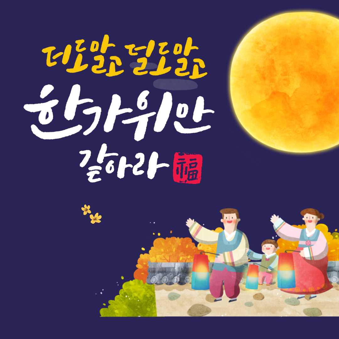 가족과 함께 따뜻한 명절 보내시고, 올 한 해의 수고를 잠시 내려놓고 편안한 시간 보내시길 바랍니다. 풍성한 한가위 보내시고 건강하세요!