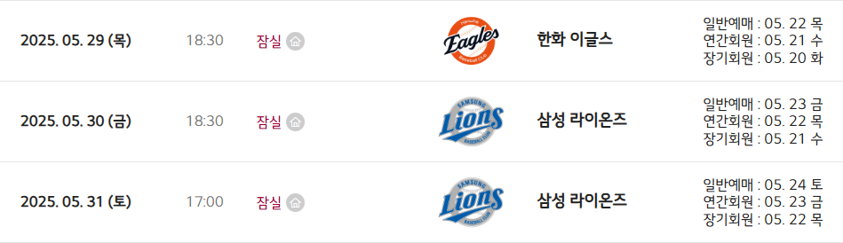• 5월 27~29 (화~목): LG vs 한화